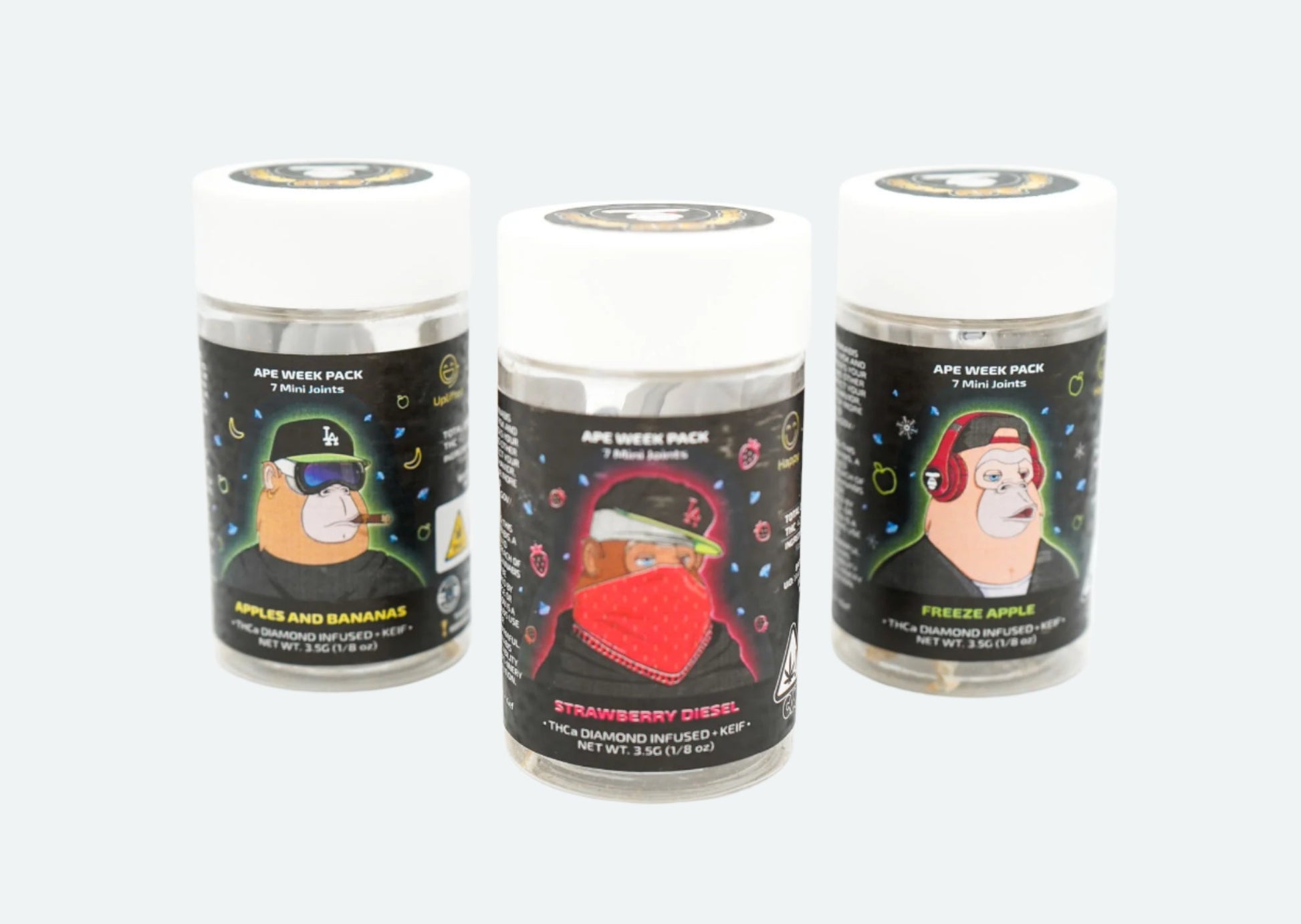 Elevate your cannabis experience with APE Diamond and Kief Infused Pre-Roll Pack, a premium selection of infused pre-rolls rolled in top quality kief crafted for discerning cannabis enthusiasts. Each pack contains 7 neatly made pre-rolls, perfectly portioned with 0.5 grams each, totaling 3.5 grams of high-quality weed.